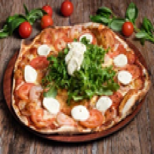 NJORD - THE GOD OF THE SEATomato Base, Oregano, Garlic Marinated Prawns, Chilli Flakes, Roma Tomatoes, Rocket And Bocconcini Salad With Extra Virgin Olive OilVegetarisk (Vegetarian)